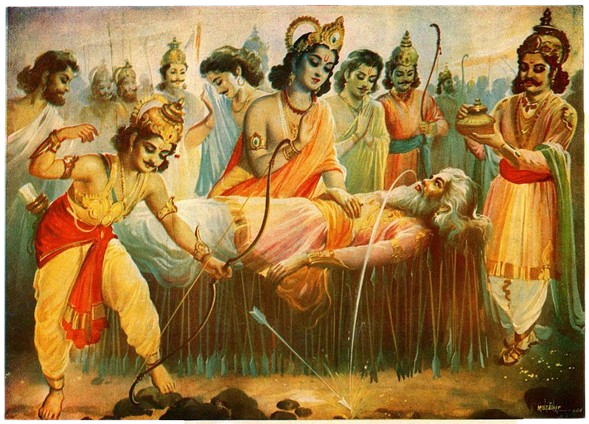 Bhismadeva menghabiskan hari-hari terakhirnya terbaring di atas ranjang panah, tubuhnya tidak menyentuh tanah. Atas permintaan Yudhishthira, ia memberikan wejangan berharga tentang dharma dan kepemimpinan kepada Yudhishthira serta adik-adiknya, dengan Sri Krishna turut hadir. Dengan kerendahan hati, Bhismadeva awalnya ragu untuk berbicara di hadapan Krishna, mengingat pengetahuan Krishna yang agung. Namun, Krishna mendorongnya dengan berkata, “Aku memiliki pengetahuan, tetapi engkau memiliki pengalaman.” Dengan berkah Krishna, Bhismadeva pun menyampaikan kebijaksanaan mendalam yang terus menjadi pedoman bagi umat manusia.